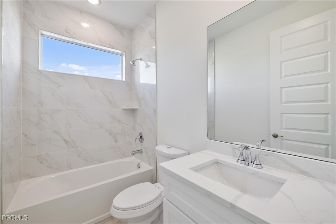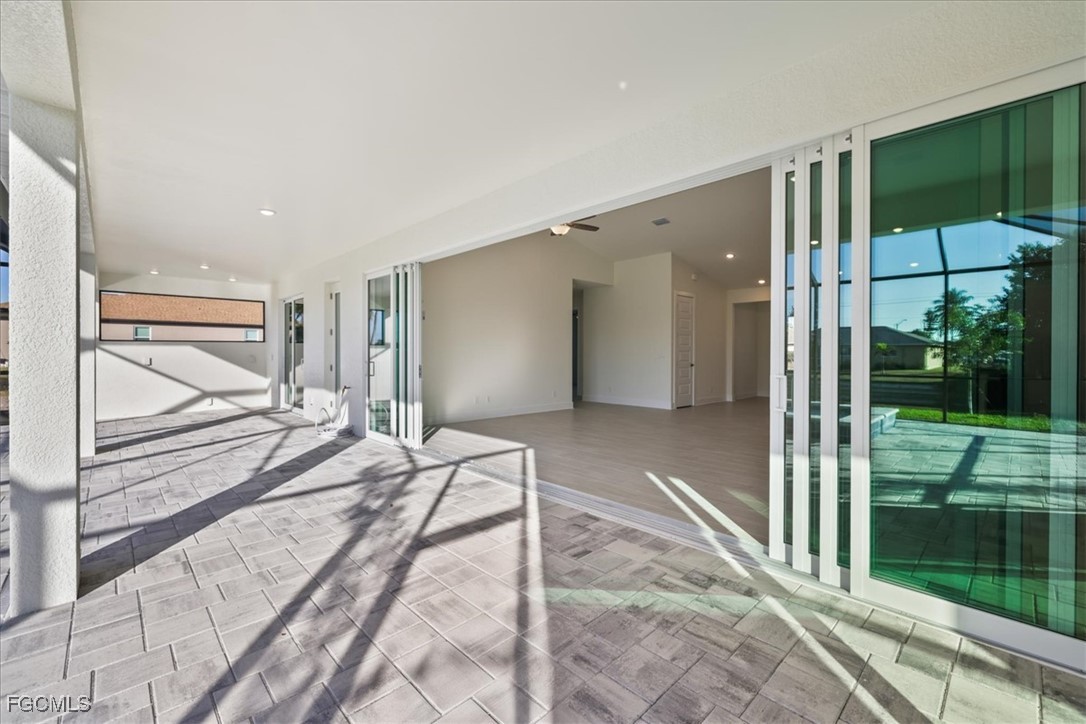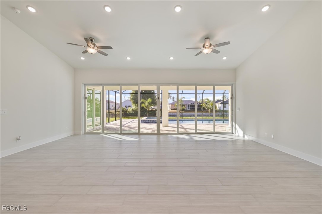 GLASS WALL OF SLIDERS-HEATED POOL & SPA COMBO - WATER VIEWS! Welcome to The Coral Haven Plan exceptional new-construction waterfront home offering refined design and modern Florida living. This 4-bed, 3-bath split floor plan features porcelain tile throughout, crown-molded volume ceilings, and abundant natural light. The kitchen anchors the entertaining space with an oversized island oriented toward serene pool and water views, complemented by quartz countertops, upgraded shaker cabinetry, a breakfast bar, and an oversized walk-in pantry.