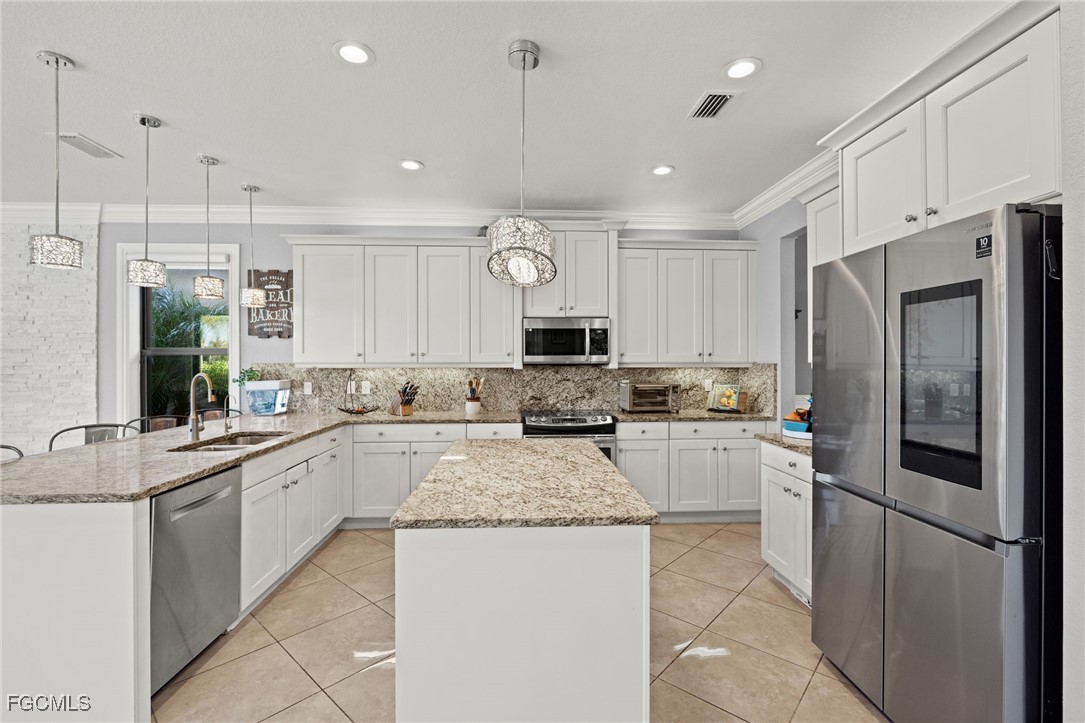 The heart of the home is the gourmet kitchen/great room area which features upgraded 42" white cabinets, RO water system, island work area, eat-in kitchen area with breakfast bar and stainless appliances, all highlighted by a white stacked custom stone TV wall. Enjoy indoor entertaining in an open concept, exquisitely designed formal dining and living rooms. The second level offers a spacious and versatile Loft, a well-appointed laundry room, and a luxurious primary suite that defines tranquility with dual spa-like baths. Spacious guest rooms provide comfort and privacy for family and friends with on suite baths. This extraordinary home is further complemented by Marina Bay’s top-tier amenities, an ultimate clubhouse that offers a 24-hour fitness center, indoor basketball court, resort pool, lap pool, gated kiddie splash pool, tennis and pickleball leagues, and a lifestyle director. No better location, beaches, RSW airport, Interstate 75, fine dining, schools, FGCU, Whole Foods and more!