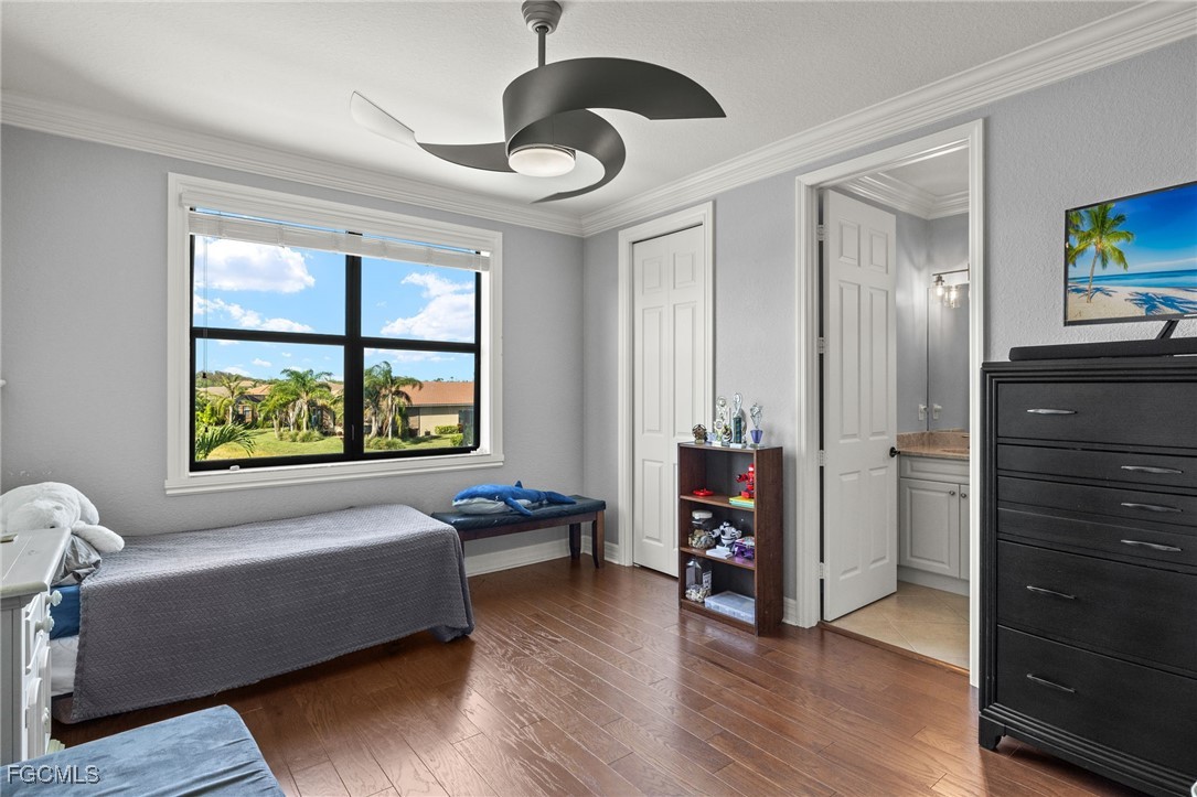 Imagine leaving the cares of the world and flying to your sunny Florida dream home 5 minutes from RSW Airport! This exquisitely upgraded 6 BDR plus LOFT, 5 BATH, 4,190 SF, 3 CAR GARAGE is in a NO FLOOD ZONE.The location is prime in the Marina Bay community, a gated amenity rich resort-lifestyle community, where everything is maintained for you, so its' easy to lock and leave. Effortless entertaining begins with the custom salt water pool and spa which are surrounded by elegant travertine tile and breathtaking sunset water views. This space is enhanced with an mosquito mist system, outdoor mood lighting, fire pit, water features and a fenced in area for child safety and pets. Modern elegance greets you from the private entrance porch into the expansive living area with custom walls, ceilings and crown molding, 20 x 20 porcelain tiles and wood flooring throughout. No Carpet.