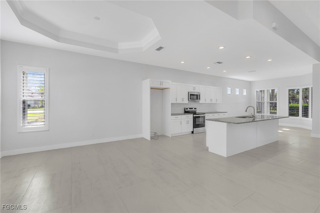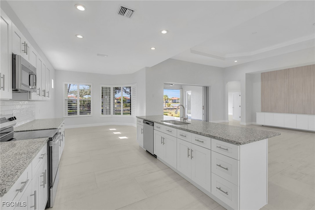 This fully renovated 3-bedroom, 2-bath single-family home is located within the gated Coco Bay community in Fort Myers and offers serene water views and a modern, open-concept design. Floor-to-ceiling windows fill the home with natural light, creating a seamless connection between indoor and outdoor living.