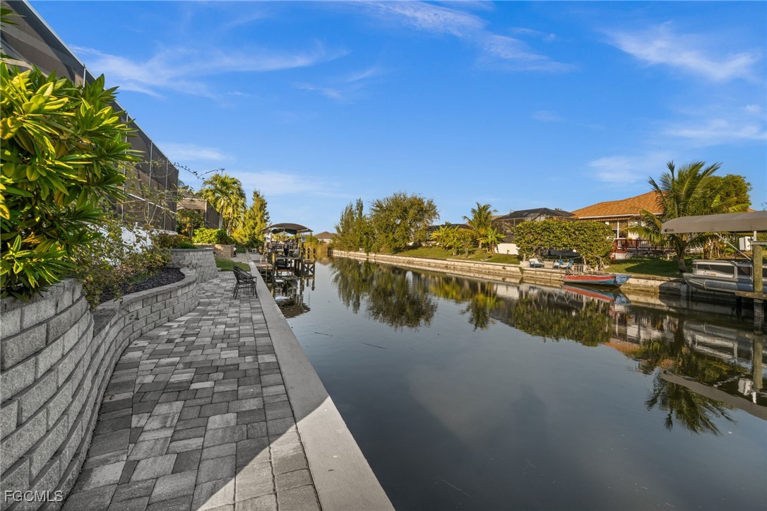 Located in highly desirable Southwest Cape Coral, this 3 bedroom, 3 bath home offers just under 1,900 square feet of thoughtfully designed living space with a three-car garage, heated saltwater pool and spa, and indirect gulf access canal frontage. Situated on city water and sewer and not located in a flood zone, this property delivers the combination of location, condition, and waterfront lifestyle buyers consistently search for in Southwest Florida real estate. A paver driveway leads to an inviting open front porch accented by a metal roof. Inside, the home opens to a spacious open-concept layout where the kitchen, living room, and dining area flow together seamlessly, creating an ideal setting for both everyday living and entertaining. Volume ceilings with decorative painted wood beams add architectural character and a relaxed Key West feel, while oversized pocketing lanai doors open completely to blend indoor and outdoor living, enhancing the Florida lifestyle experience. The kitchen is designed for both function and storage, featuring high-end cabinetry, granite countertops, stainless steel appliances, and a large center island with breakfast bar seating. The island includes a built-in wine cooler and a brand-new built-in dishwasher, along with ample cabinet space throughout. Just off the kitchen is a generously sized in-residence laundry room with granite countertops, a utility sink, and extensive cabinetry, offering added convenience and organization. The split-bedroom floor plan provides privacy and flexibility. The primary suite is positioned on one side of the home and features French doors opening directly to the lanai, offering private access to the pool and canal views. The suite includes two walk-in closets, dual sinks, and a large walk-in shower. The guest side of the home includes two additional bedrooms and a spacious guest bathroom with a walk-in shower and accessibility features. One guest bedroom includes a built-in cabinet with a pull-down desk that also converts to a bed, allowing for versatile use of the space. Separate pool bath provides access to the lanai for easy indoor-outdoor use. Outdoor living centers around the heated saltwater pool and sp. New paver walkway extends to the water’s edge, creating additional space to relax, dine, or enjoy peaceful canal views with passing boats and local wildlife. The 3 car garage includes pull-down staircase to the attic, the area above the two-car portion fully floored, having storage space. Improvements include a new roof in 2023, a new A/C system 2025 with a 3 ton condenser and UV light, newer saltwater pool equipment, updated 3 zone irrigation, recently painted exterior. Additional features include a whole-home generator with transfer switch, seven Ring security cameras, and whole-home Lutron smart lighting with voice and app control. Homes offering gulf access, no flood zone, updated major systems.