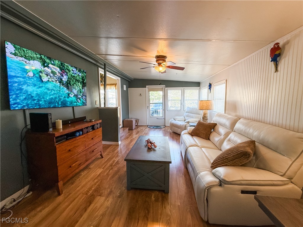 Move in Ready 2 Bedroom 1 Bathroom home. This home features updated flooring, windows, electrical, New AC and ductwork, plumbing and freshly painted! Enter through front deck into spacious living room. Up 2 steps to bright and airey dining room and kitchen. Kitchen features tons of storage. Bathroom in hallway with door to bedroom for en-suite access. Queen bed with new mattress. Guest room in back of Florida room, with attached laundry closet and sink. Door to back covered deck, private backyard with palm hedge. Sold Turnkey, Furniture negotiable, Golf cart also negotiable. Corkscrew Woodlands is a 55+ Gated community. Enjoy the lakefront lap pool, hot tub, and fishing pier. Paddle-boat or kayak on the 23-acre lake. Wildlife on the miles of nature trails, bridges and canals, including a butterfly garden. Sporting and Social events, something for everyone! Affordable HOA fees of $717/quarter includes Water, Sewer, Basic Cable and Lawn maintenance! Land is OWNED, no lot rent!