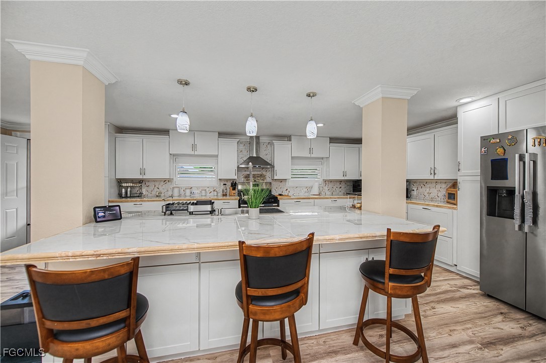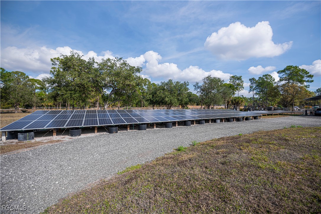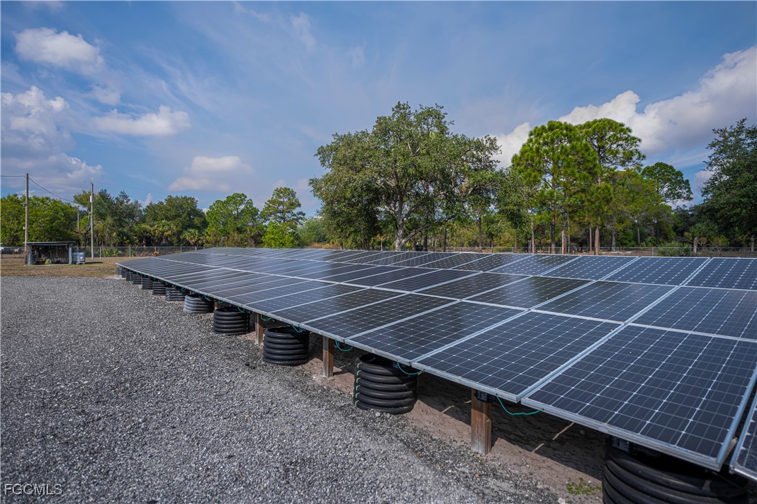 Energy infrastructure supports true self-sufficiency, including fully paid solar, a whole-home generator with automatic transfer switch, hurricane panels for all windows, well and septic systems, full-property irrigation, concrete stucco exterior, and an integrated security system.