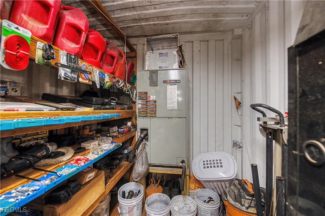 The property includes a 20' x 40' climate-controlled mechanic’s workshop with high ceilings, roll-up access, lighting, workbenches, shelving, and dedicated electrical, ideal for vehicles, equipment, or serious hobby use. Adjacent is a converted 8' x 40' steel shipping container intended as guest space or emergency shelter, featuring a kitchenette, sleeping area, full bath, and its own mini-split.
