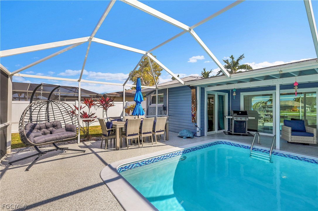 Exceptional Gulf Access Turnkey Pool Home on Rubicon Canal Prime Location and Unmatched Accessibility Location is everything! This property represents an incredible opportunity to own a Gulf Access turnkey pool home, situated on an oversized lot along the highly desirable 200-foot wide Rubicon Canal. Nestled in one of Cape Coral's best neighborhoods, residents enjoy convenient access to Downtown Cape, the Yacht Club, and Fort Myers, all just a short drive away. Additionally, the home offers quick boating access to Cape Harbor, Tarpon Point Marina, and the Caloosahatchee River. Home Features and Layout The residence is equipped with two newer air conditioning units, and all mechanical systems are in excellent condition. The thoughtfully designed floor plan includes four bedrooms and two bathrooms, complemented by a spacious living area or great room. The dining area overlooks both the canal and the pool, while multiple sliding glass doors and a generous kitchen provide an open feel and picturesque views of the water and pool from many rooms throughout the home. Outdoor Living and Safety The pool deck is ideal for entertaining, offering stunning views of the canal and mature landscaping. The home sits high and dry, having remained untouched by floodwaters during Hurricane Ian, ensuring peace of mind for future owners. Instant Equity Opportunity Do not miss out on this chance to acquire a property with immediate equity in an exceptional location.