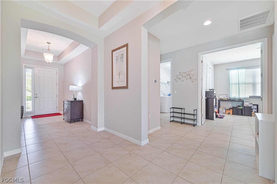 This beautiful Ashbury floorplan is your DREAM HOME. It has a large open floor plan with 4 bedroom + den/formal dining room, 3.5 bathrooms, whole house WATER SOFTENER, and is move in ready. It has a serene lake view and is on a quiet cut-de-sac. Plenty of room to add a pool with a .5 bath outside on the spacious lanai. This property is not located in a Flood zone and has a new AC, H20, microwave, dishwasher, disposal, and dryer. It's located in the gated Lindsford neighborhood that has resort style amenities, tennis, basketball, fitness and very low HOA's that include LAWN CARE. Lindsford is in central Ft Myers close to RSW, beaches, downtown river district, shopping, and restaurants. Schedule your showing today!