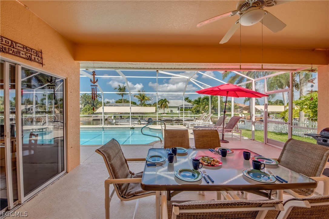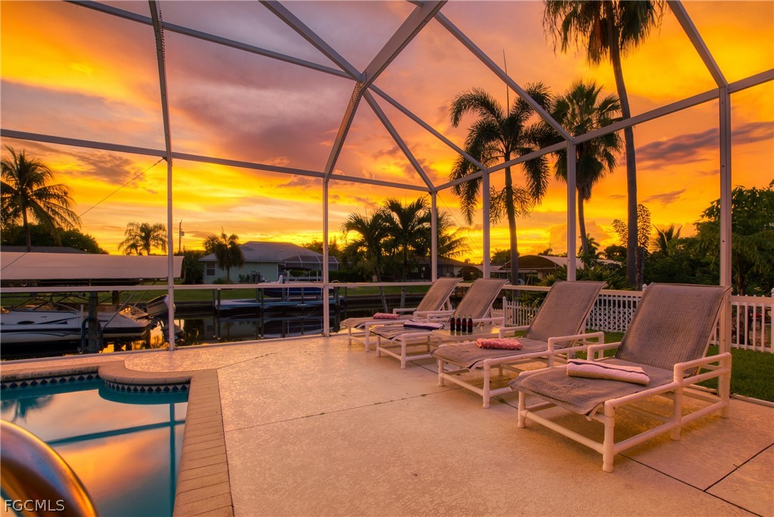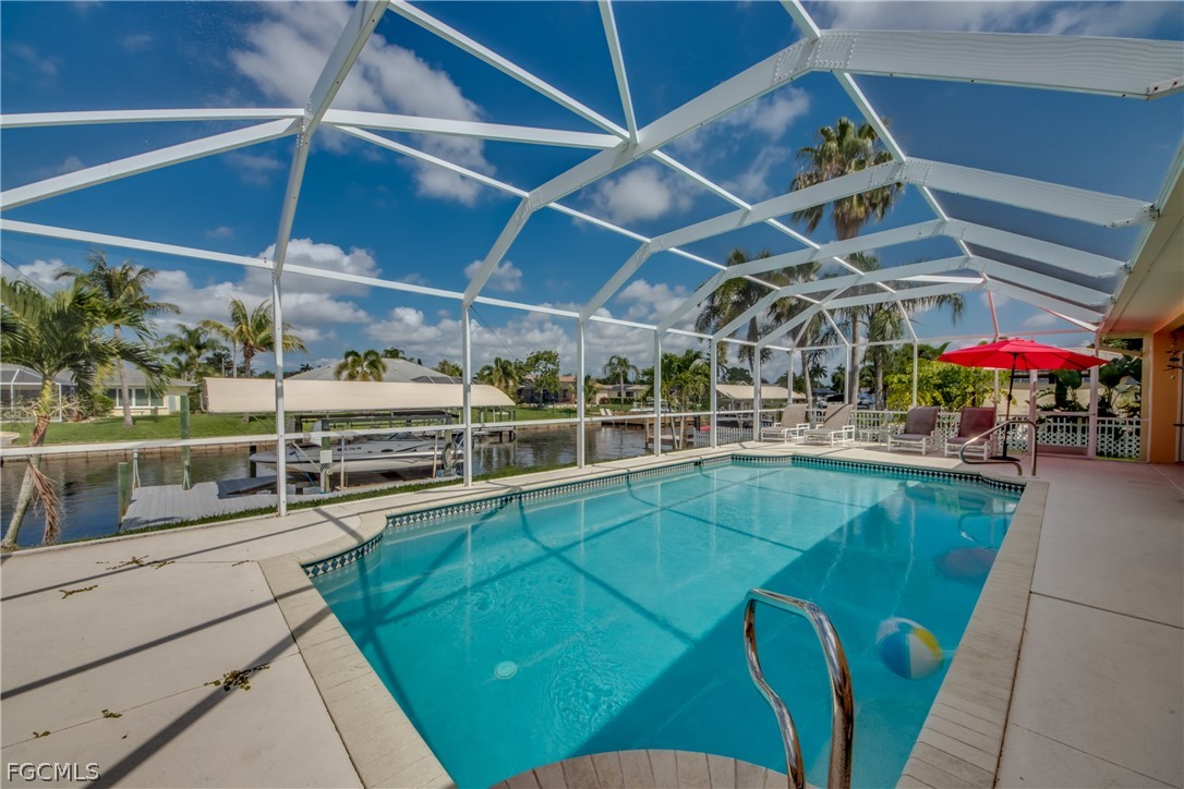 Turnkey and in a desirable neighborhood, the Cape Coral Yacht Club! This current vacation home offers three bedrooms, two and half baths, and an open concept living/dining area. Stunning outdoor living allows you to cook the perfect meal on your BBQ Grill, take in the breathtaking sunset views, enjoy peaceful time by the pool, Gulf Access boating and living, the Florida Dream on the water. There is 1 bridge approx. 8.5FT height and a 5 min. drive to the Caloosahatchee River/Open Waters. A two-car garage, in home laundry, Waterproof laminate and tile flooring, electric pool heating, Pool bath, locked under air storage room on patio, boat dock and lift and more. 2022 saw the addition of a new roof. The dock/pilings will need repair - please see the conf. remarks. Cape Coral Beach is a short distance away and our exclusive restaurants and shopping. Just a few miles away from SWFL Regional Airport and other white sandy Beaches. The home has a higher elevation and with the past storms there was no flooding inside home or any major damage. Seller has rented this home since 2013 and current rentals are in place but now have been paused due to owner selling property. Everything included for your convenience, being Sold Turnkey just come and enjoy the beautiful Florida Lifestyle or continue as a Vacation Rental.
