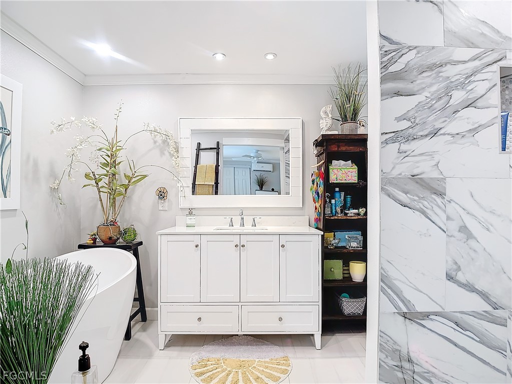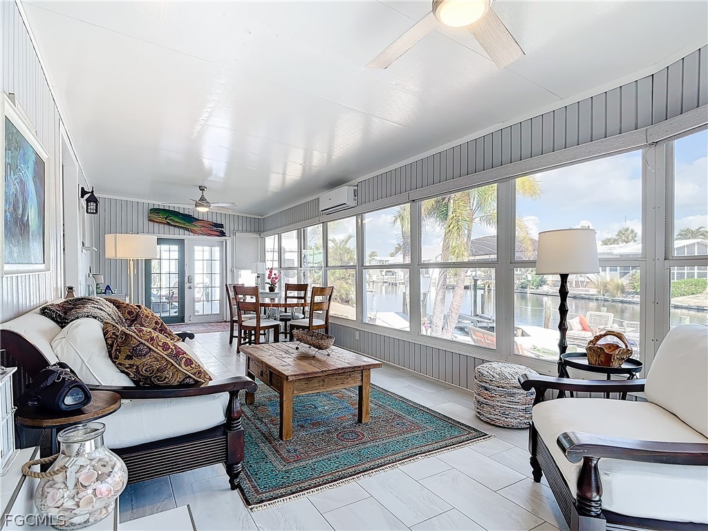 Rare opportunity to own a premier Bayside point corner lot with coveted southeastern exposure on a canal—offering over 150 feet of seawall and a setting that is seldom available. Located in Bayside Estates, a highly sought-after 55+ community known for its vibrant lifestyle and outstanding amenities, this extensively updated 2-bedroom, 2-bath home delivers the ultimate coastal vibe and waterfront living experience. No corner has been untouched, featuring ¾" plywood subflooring, ¼" cement board screwed (not nailed), beautiful porcelain flooring, new windows with marble sills, crown molding, 4" baseboards, recessed lighting, and updated electrical. The primary bath offers a European soaking tub for a spa-like retreat. Outdoor living is designed for both relaxation and entertaining, with a heated 60,000 BTU saltwater Gunnite pool, bronze custom enclosure, remote-controlled lanai blinds, electric hurricane shutters, Tiki hut with outdoor kitchen, Azek decking, professionally designed zero-scape landscaping, and serene preserve views. Wine and dine, host gatherings, or simply unwind while boats cruise past—this property offers multiple spaces to enjoy the waterfront lifestyle. Boating enthusiasts will appreciate the new stringers and 10,000 lb boat lift with canopy, and there is 50-amp service for a motorhome along with a 12x20 garage for additional storage or workspace. Just 2.5 miles from Estero Island with convenient access to beaches, dining, and shopping, this home blends privacy, luxury, and accessibility. Bayside Estates features amenities including tennis, community pool, clubhouse, live music, bingo, card nights, and a wide variety of organized activities. Premier point lots like this are rare—secure your waterfront retreat before it’s gone.