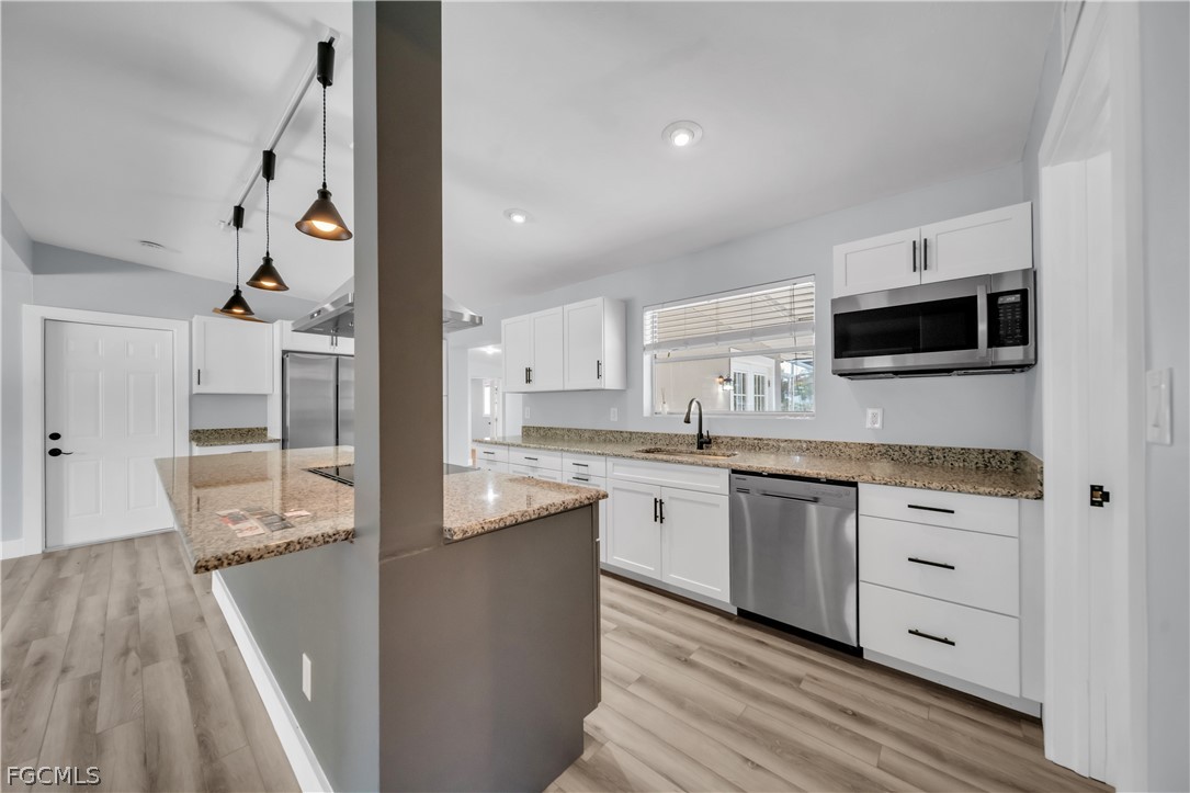 WATERFRONT POOL HOME + GULF ACCESS + TWO PRIMARY SUITES. Welcome to the peaceful, tucked-away lifestyle of Fort Myers Shores—where days move slower, sunsets feel bigger, and the water is part of everyday living. This fully remodeled 4-bedroom, 3-bath home offers over 1,900 sq ft with a flexible layout that’s perfect for multi-generational living, long-term guests, or creating a true private retreat with two primary suites.
