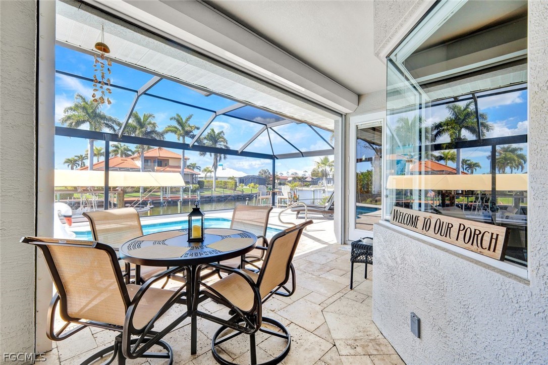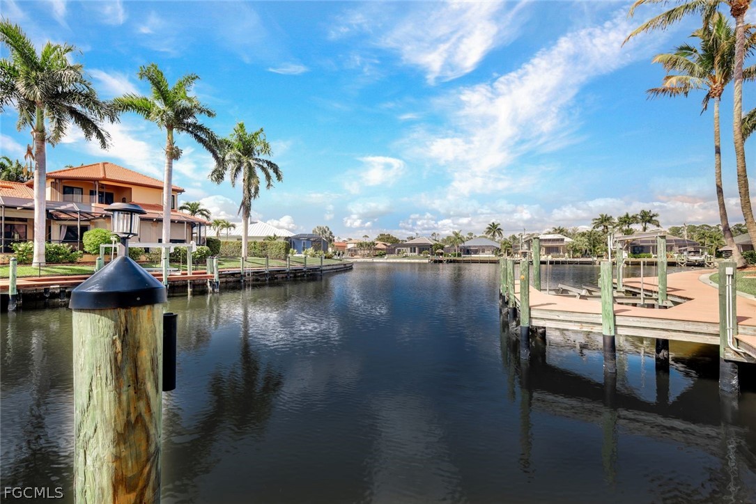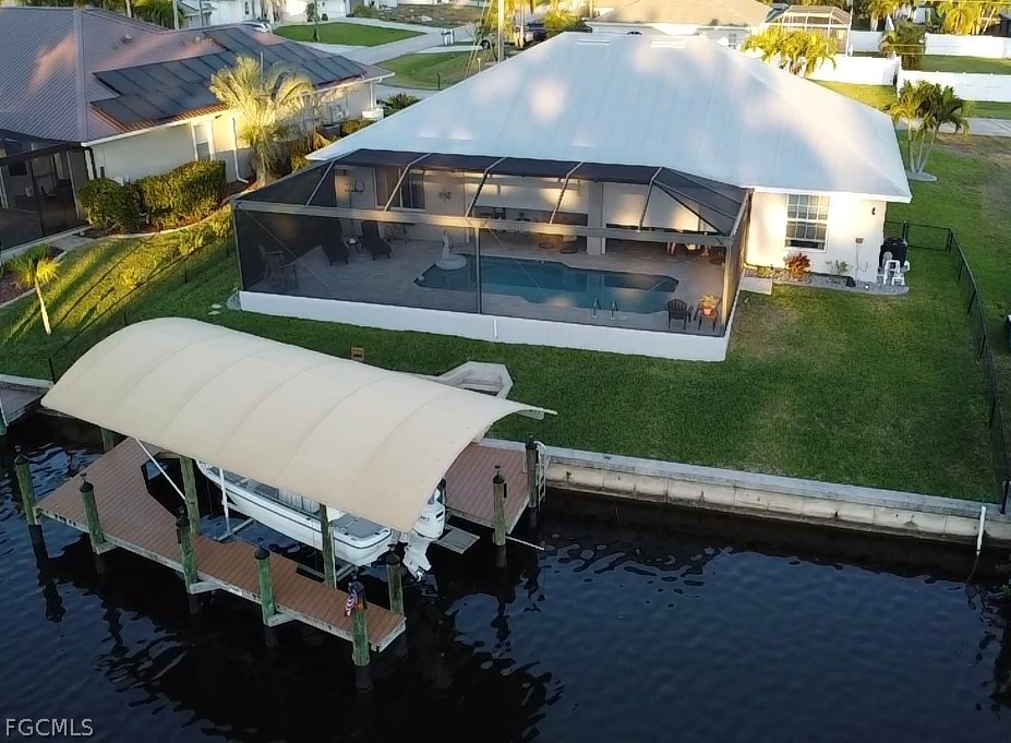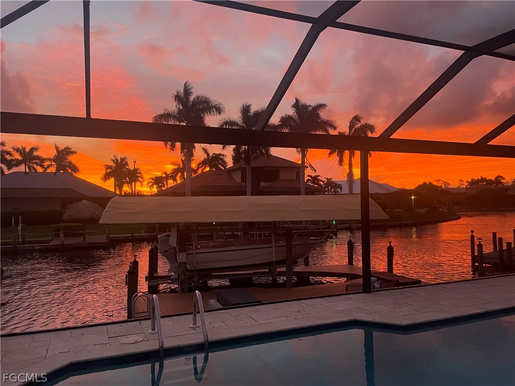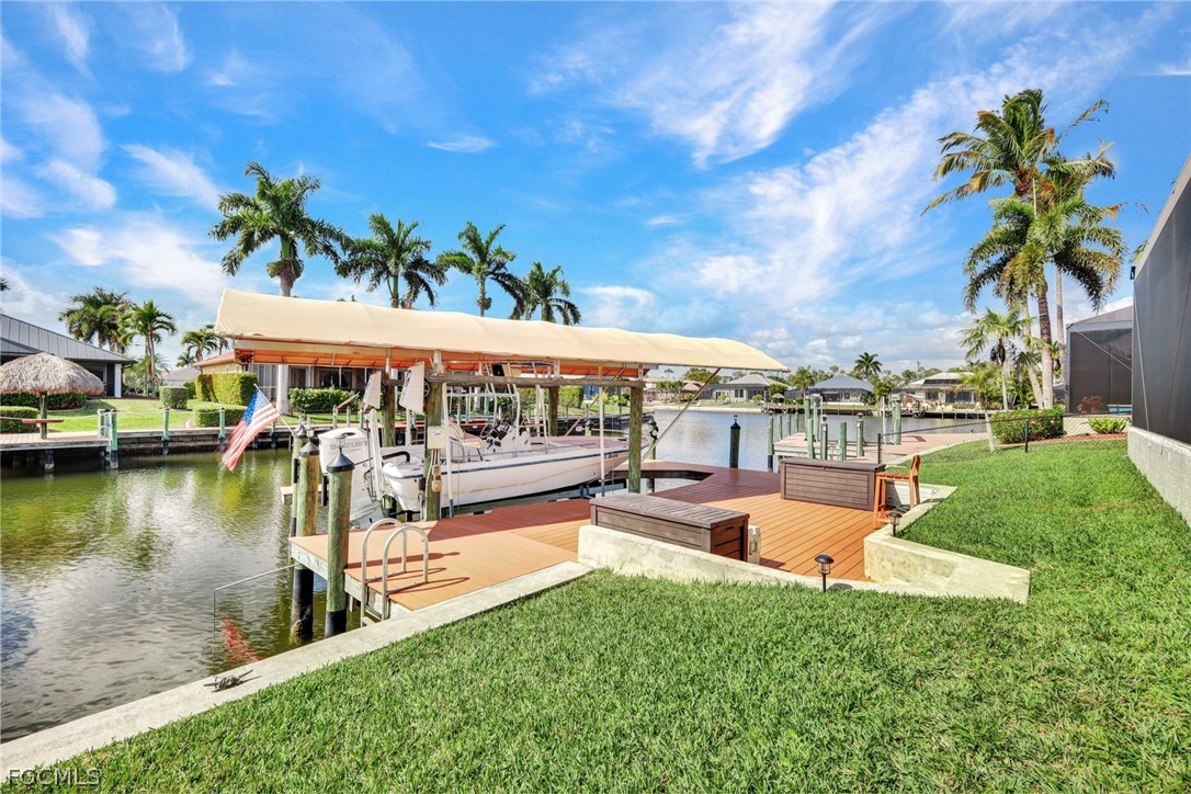 Want to make boating part of your daily life?!? With Gulf access via the Spreader Canal, you’ll be able to enjoy the open-water by way of your own backyard! The 7,600-lb boat lift and walk-around composite dock create a clean, modern waterfront setup that’s as functional as it is inviting — launch at sunrise, return at sunset, repeat. Situated along the tranquil backside of the neighborhood drive, this home offers added privacy and minimal through traffic. Inside, soaring ceilings and generously scaled rooms give the home an airy, almost gallery-like feel, yet the atmosphere remains warm and comfortable. Vinyl plank and tile flooring run throughout, blending durability with coastal texture. The kitchen is expansive and highly workable, offering abundant counter space and prep areas — designed for real cooking, real gatherings, and entertaining. The home opens to a stunning travertine lanai and pool area designed for seamless indoor-outdoor living. Wide poolside areas leave plenty of room for lounging, dining, or simply soaking up the western-exposure sunsets that paint the sky each evening. The heated pool offers the ideal setting for effortless outdoor living, no matter the time of year. A metal roof and electric storm shutters provide elevated storm readiness without sacrificing style. The home’s favorable elevation adds peace of mind, while the fenced yard enhances privacy and flexibility. Coastal yet cozy. Spacious yet inviting. This home balances personality with practicality and delivers Gulf-access living in a location buyers consistently seek. Close to popular school districts, centrally located to shopping and dining. Walk, bike, or boat from this meticulously kept home and enjoy all Cape Coral and SWFL have to offer! Or just sit on your dock and fish!!!