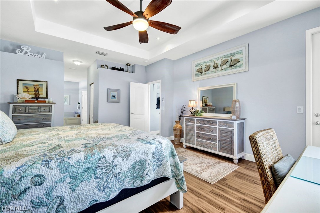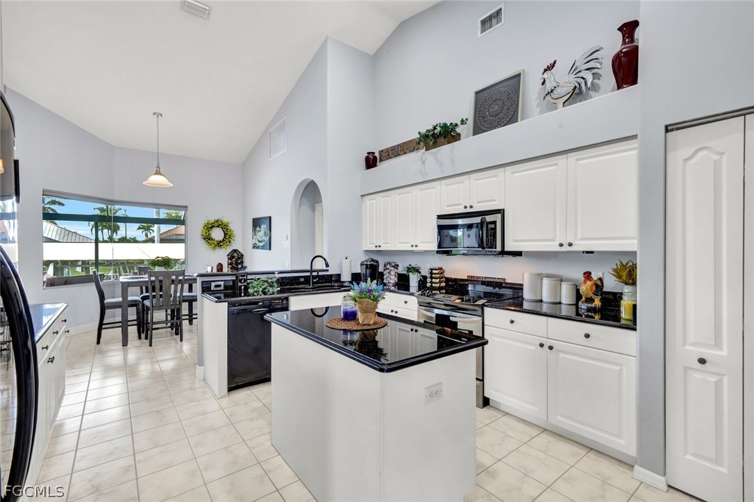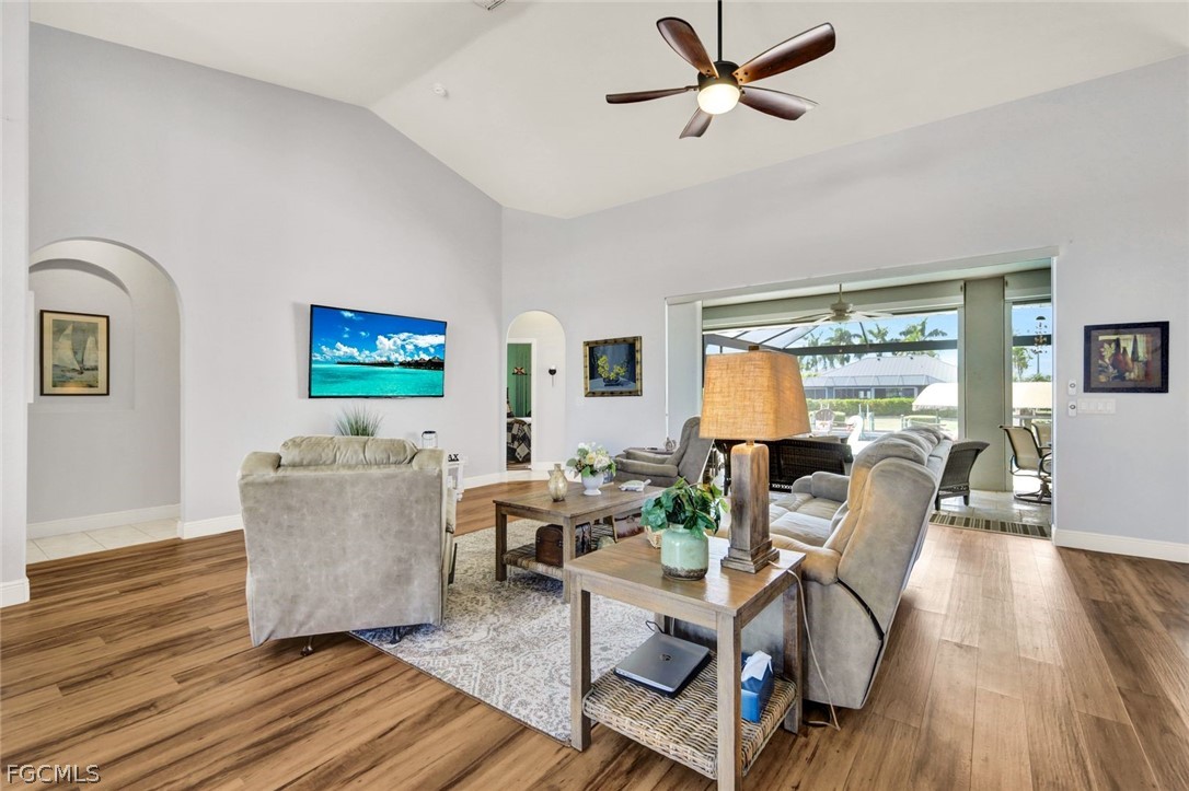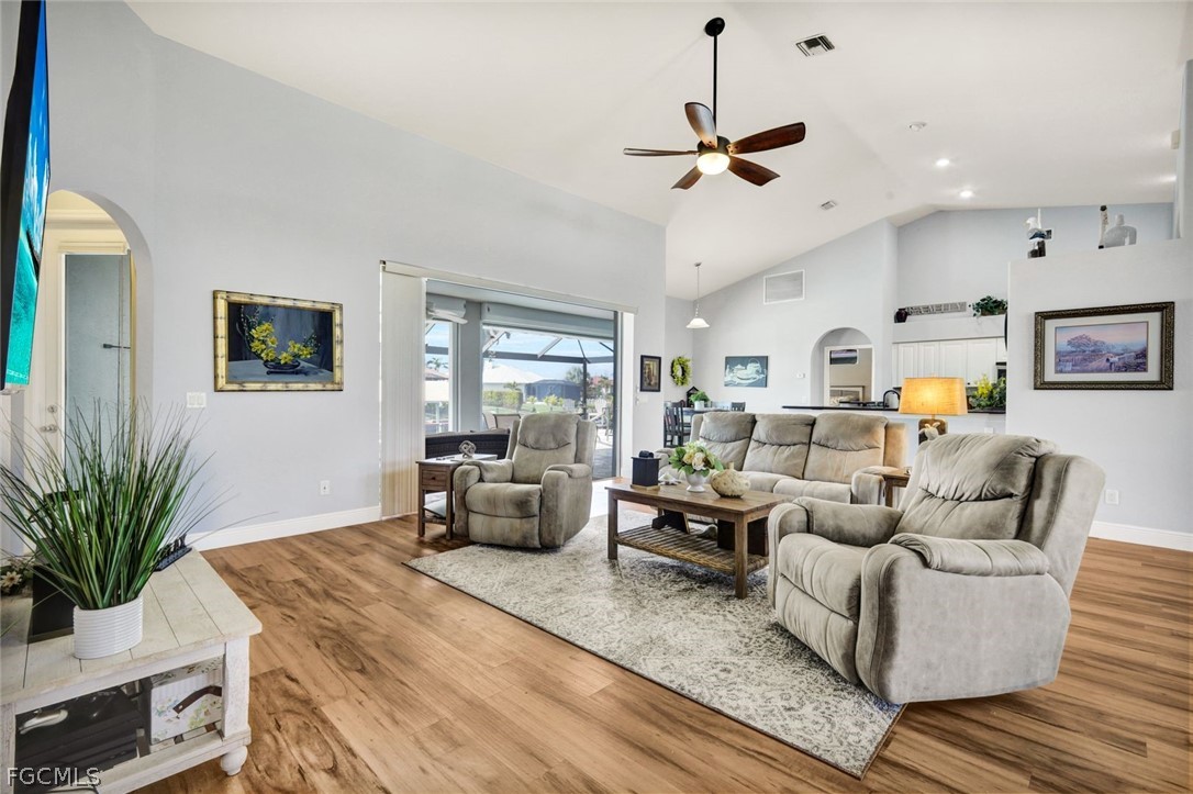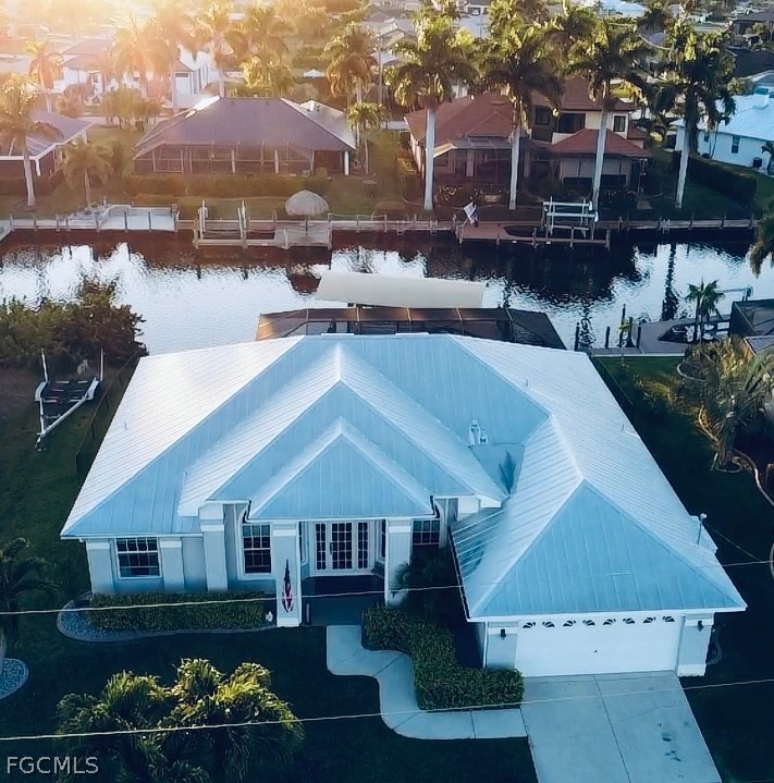 Want to make boating part of your daily life?!? With Gulf access via the Spreader Canal, you’ll be able to enjoy the open-water by way of your own backyard! The 7,600-lb boat lift and walk-around composite dock create a clean, modern waterfront setup that’s as functional as it is inviting — launch at sunrise, return at sunset, repeat. Situated along the tranquil backside of the neighborhood drive, this home offers added privacy and minimal through traffic. Inside, soaring ceilings and generously scaled rooms give the home an airy, almost gallery-like feel, yet the atmosphere remains warm and comfortable. Vinyl plank and tile flooring run throughout, blending durability with coastal texture. The kitchen is expansive and highly workable, offering abundant counter space and prep areas — designed for real cooking, real gatherings, and entertaining. The home opens to a stunning travertine lanai and pool area designed for seamless indoor-outdoor living. Wide poolside areas leave plenty of room for lounging, dining, or simply soaking up the western-exposure sunsets that paint the sky each evening. The heated pool offers the ideal setting for effortless outdoor living, no matter the time of year. A metal roof and electric storm shutters provide elevated storm readiness without sacrificing style. The home’s favorable elevation adds peace of mind, while the fenced yard enhances privacy and flexibility. Coastal yet cozy. Spacious yet inviting. This home balances personality with practicality and delivers Gulf-access living in a location buyers consistently seek. Close to popular school districts, centrally located to shopping and dining. Walk, bike, or boat from this meticulously kept home and enjoy all Cape Coral and SWFL have to offer! Or just sit on your dock and fish!!!