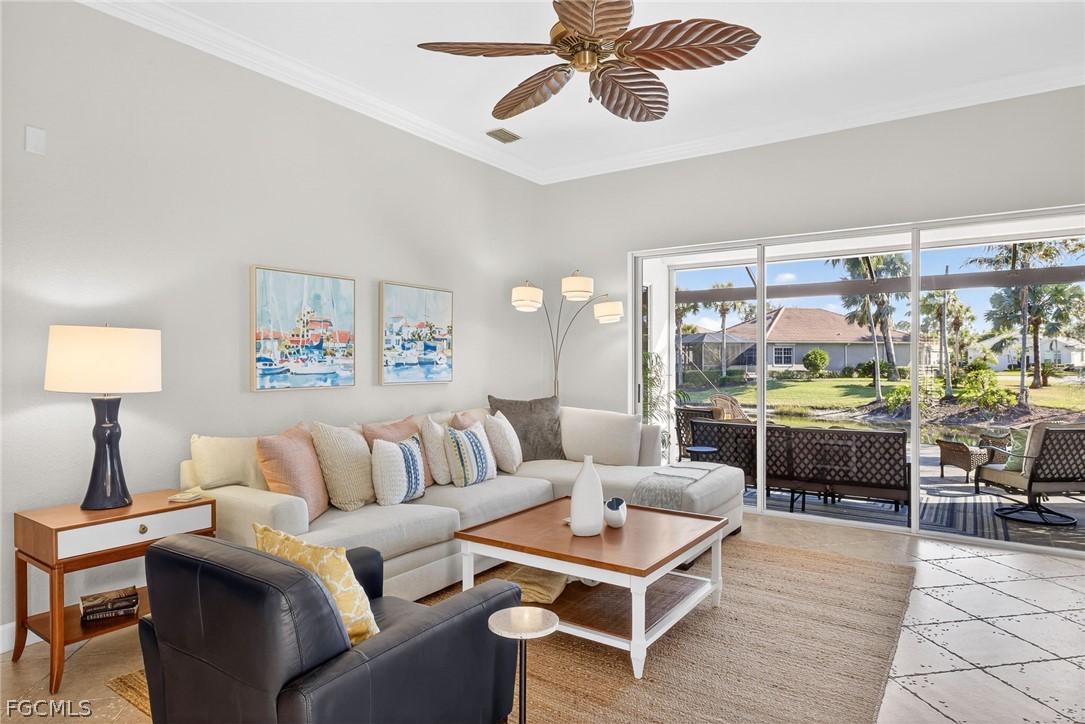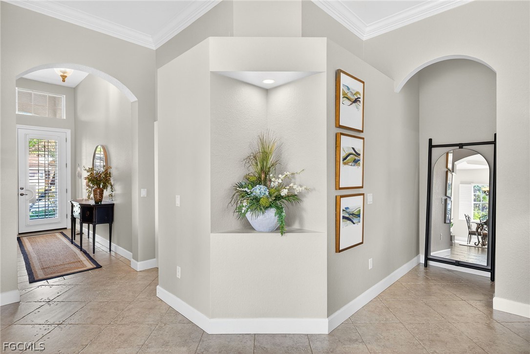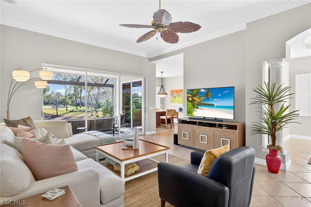 Welcome to Crown Colony in Fort Myers! This meticulously maintained 2-bedroom + den, 2-bath residence offers an inviting blend of comfort, style, and Florida charm. Step through the entry foyer into a thoughtfully designed floor plan highlighted by elegant arched doorways and tray ceilings that add architectural character throughout. Fresh interior paint enhances the home’s natural light and open feel. The versatile den provides the perfect space for a home office, media room, or guest retreat. The spacious primary suite features a large walk-in closet and a luxurious en-suite bath complete with dual sinks, a garden tub, and a separate walk-in shower. A generously sized second bedroom and full guest bath provide comfort and privacy for family and visitors. Enjoy indoor-outdoor living at its best from the expansive lanai featuring a brand-new panoramic screen enclosure and a newly tiled deck, all overlooking the lake with desirable southern exposure. It’s the perfect setting for morning coffee or evening relaxation while taking in Southwest Florida’s beautiful sunsets. Additional features include a convenient laundry room with a utility tub and ample storage throughout. The Golf Club at Crown Colony offers championship golf right outside your door. This gated and guarded 24/7 community provides peace of mind along with resort-style amenities, including a beautiful community pool and fully equipped fitness center. HOA fees conveniently include cable, internet, and lawn and landscape maintenance, allowing for easy, low-maintenance living. The community is just a short drive to Sanibel Island, Captiva Island, and Fort Myers Beach, providing easy access to beautiful beaches and outdoor activities. Located in the highly desirable Crown Colony community, residents enjoy a prime location close to shopping, dining, and everything Southwest Florida has to offer. Schedule your private showing today and experience the lifestyle you’ve been waiting for!