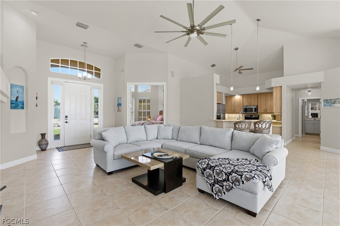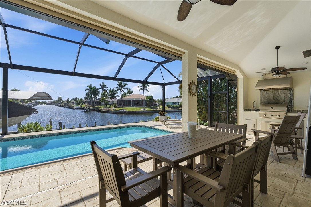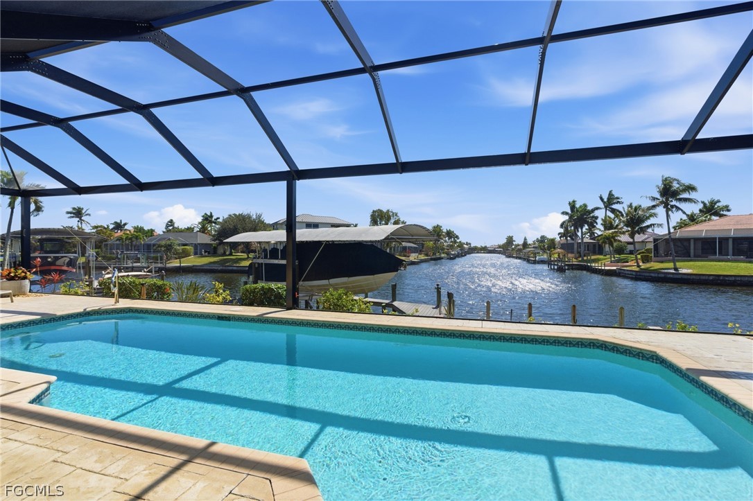 GULF ACCESS - 4 bedrooms/3 bathrooms home in a gorgeous SW Cape Coral neighborhood, right off of Surfside Blvd. Perfect southern rear exposure gives you that Florida sunshine ALL day. Set on a wide intersection canal, the home offers breathtaking water views and enhanced privacy - perfect for relaxing or entertaining. The thoughtfully designed floor plan includes 4 spacious bedrooms and 3 full bathrooms, offering comfort and flexibility for family and guests. Zero corner sliding doors opens up 100% into pockets creating a true indoor/outdoor experience, letting that air and light into the house. Features include a large heated pool, spacious screened lanai, new pool cage with panorama screens and extra thick and strong aluminum pillars, a fully equipped outdoor kitchen, a new large dock and boat lift, and beautiful green and lush landscaping. The perfect house for boating and Florida outdoor living.