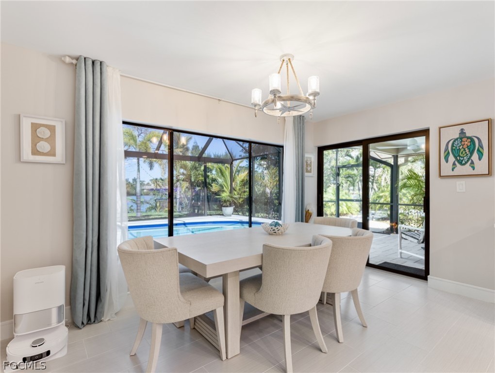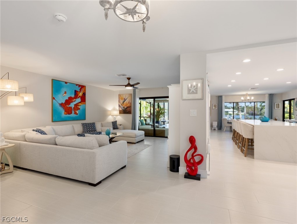 Stunning Sunsets are “included” with this lakefront masterpiece home! Feel the “wow factor” as you step inside this 3 bedroom + den pool home that’s nestled on over 1 acre in the heart of South Fort Myers. Perfectly positioned along an expansive lake with breathtaking views, this home is designed for the most discerning buyer. The owners spared no expense - showcasing $400,000 to renovate the home from the studs out with impeccable craftsmanship and high-end finishes throughout. The open, light-filled floor plan with lake views from every room creates a seamless blend of comfort and sophistication, enhanced by neutral designer paint tones and tile flooring that flows throughout the entire home. The kitchen is a true centerpiece with a full-slab quartz waterfall island with generous seating —perfect for gathering and entertaining. Features include a designer backsplash, farmhouse sink, brand-new appliances, wine cooler, pantry, soft-close cabinetry, crown molding, and LED lighting under the cabinets. The thoughtfully designed split-bedroom layout ensures privacy, with each bedroom offering tranquil lake views. The expansive primary suite measures over 16x16 and provides a true retreat. The spa-inspired en-suite bath features quartz countertops and a luxurious rainfall shower. A spacious custom walk-in closet completes the suite. Step outside to your own tropical paradise set on over an acre of beautifully reimagined grounds. The redesigned enclosed lanai has been upgraded for elevated outdoor living, offering two separate sitting areas ideal for entertaining. The fully renovated pool boasts new tiles, pavers and coping, resurfaced interior, LED color-changing lighting, super screen fabric, and a picture screen cage. Three sets of Impact glass sliders add protection and peace of mind. The lush, mature landscaping is extraordinary, featuring a variety of palms and flowering trees along with multiple tree swings. A fenced area provides a safe play space for pets, while a large, tiled pad tucked beneath the trees creates a serene Zen-inspired sanctuary. The brand-new composite dock is the perfect place to watch the sunset, launch a kayak, or cast a line. Additional upgrades include a 2024 roof, A/C, new water heater, new pool heater 2026, plus all-new re-piped plumbing and updated electrical, foam insulation, and whole-yard irrigation. Truly move-in ready, there is absolutely nothing to do but move in and enjoy. Located in the highly desirable Heritage Farms Lake Addition in South Fort Myers, just minutes from Lakes Park, this property delivers the perfect balance of seclusion and convenience. And, there's plenty of extra space to park your RV, Boat, or toys! Plus, no HOA fees! Close to shopping, restaurants, white sand beaches and Southwest Florida International Airport, this extraordinary property delivers luxury, location, land, waterfront, and lifestyle—an exceptionally rare combination in the heart of South Fort Myers. You are now HOME!