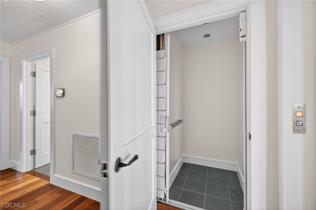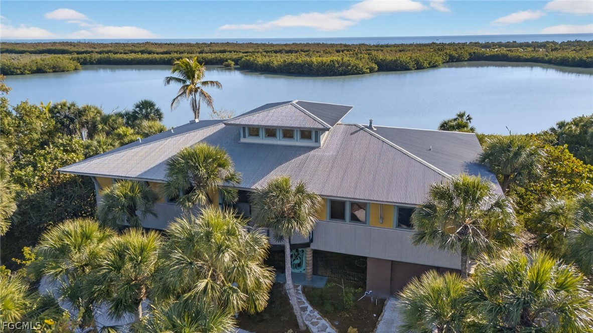 BREATHTAKING VIEWS OF CLAM BAYOU! This waterfront near beach custom home on the west end of Sanibel has incredible views, exceptional privacy, and provides an opportunity to enjoy the true majesty of the island. From your private dock, Sanibel's spectacular uncrowded gorgeous beaches are accessible by water. Kayaking in the Bayou is an amazing way to experience this unique setting, immersed in the untouched splendor of the island. Blind Pass Beach and Bowman's Beach are also easily accessed via the bike path. The screened two lane lap pool offers another way to enjoy the water while the expansive screened lanai extends the living space, taking full advantage of this fabulous location. With an architectural style that fully respects this natural setting, concrete, wood, stucco and metal come together to create a resilient work of art. Large rooms, high ceilings, transom windows, wood and tile flooring, and abundant storage make the spaces inviting and hugely functional. Two enclosed garages and an elevator offer convenience while the ground level open air foyer welcomes guests with a one of a kind shell fountain. Inspired by the natural environment that surrounds it, this home is perfectly Sanibel.