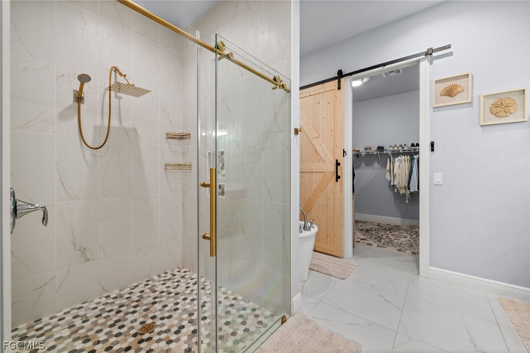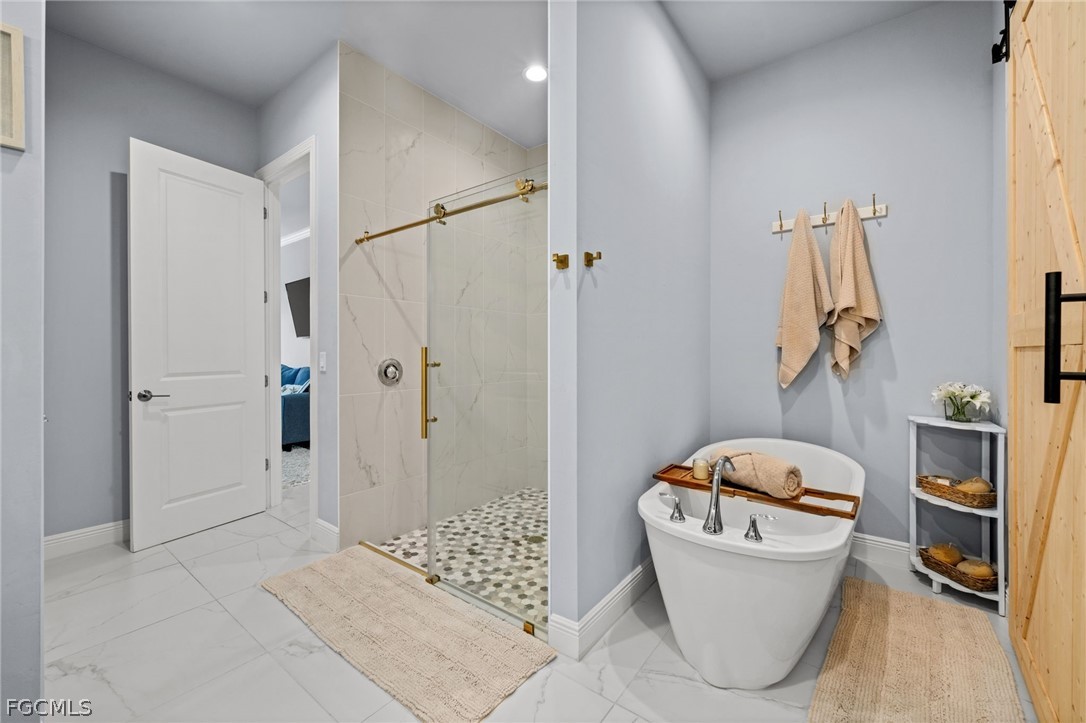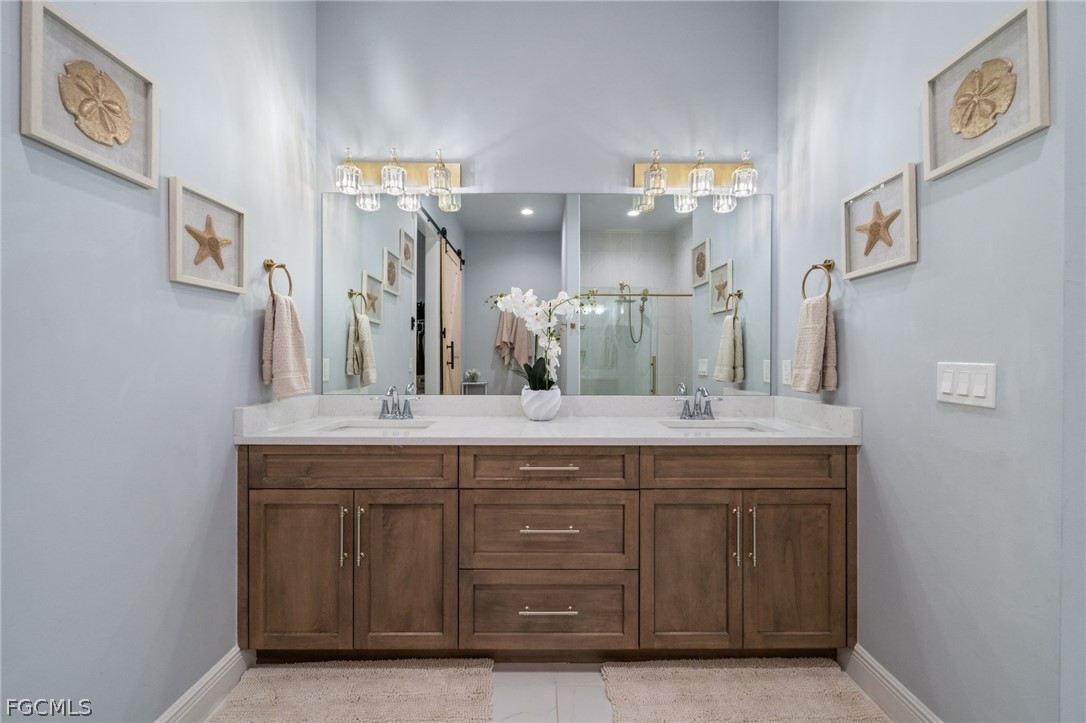 The fifth bedroom functions as an oversized cabana-style mother-in-law suite with private sliding glass doors to the lanai, kitchenette, and dual-sink bath. All bathrooms include dual vanities except the pool bath. Additional upgrades include an Ecobee thermostat, Navien 199k BTU gas tankless water heater, whole-house reverse osmosis system with secondary RO added in 2024, and a buried 250-gallon propane tank servicing the range, water heater, and pool heater.