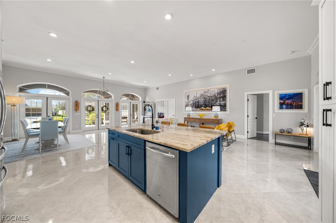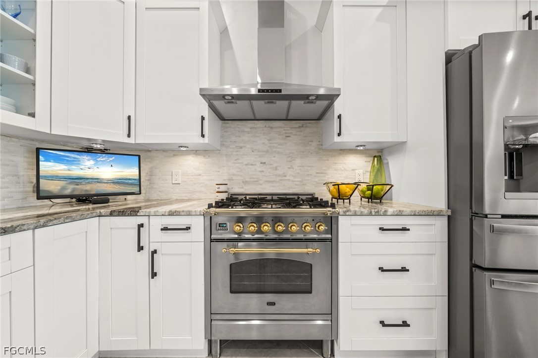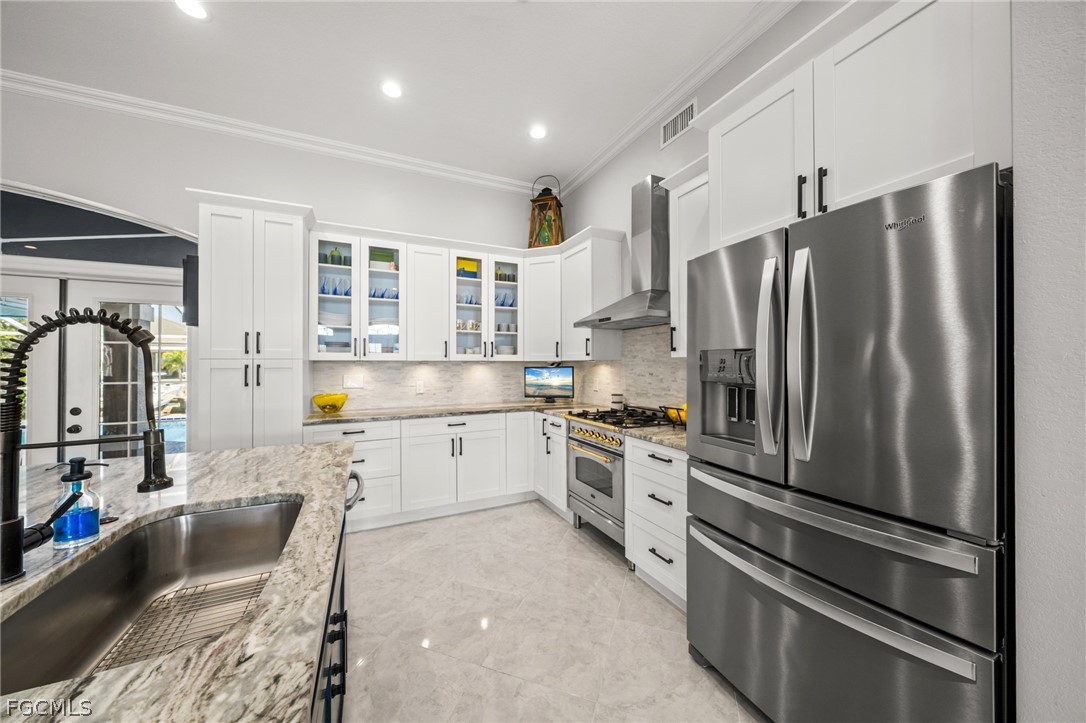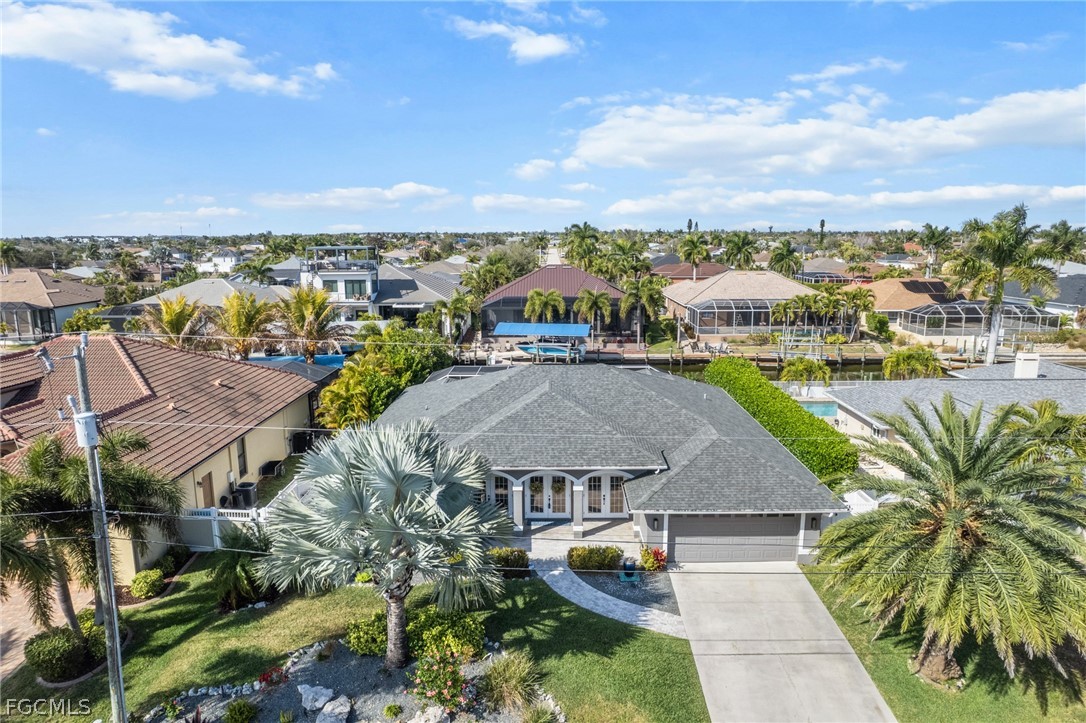 Completely remodeled Gulf Access pool home in SW Cape Coral near Cape Harbour, offering fast boating access. This 2,471 SF waterfront home features 4 bedrooms, 3 full bathrooms, a dedicated workshop (office or flex space), and a 2-car garage. Lush tropical landscaping and a welcoming fountain create a striking first impression, leading to a dramatic glass entry through 3 sets of French doors. Inside, the open-concept floor plan is highlighted by soaring vaulted ceilings, abundant natural light, refreshing cross-breezes, and views of the pool overlooking the wide canal. The home has been extensively upgraded and is sold furnished. The kitchen is the centerpiece of the home, showcasing granite countertops with bar seating, custom cabinetry, stainless steel appliances, a custom pantry and coffee bar, a chef’s custom Italian duel-fuel gas range, and propane gas service to the house (Suburban Propane). The laundry room has also been fully updated with a new washer and dryer. The Master bedrooms overlook the water, featuring large walk-in closets and a remodeled master bathroom that will feel like a trip to a luxury spa at a resort! All 4 bedrooms are generous in size, remodeled, and offer great storage. All 3 bathrooms are full baths and have been updated. An expansive lanai creates the perfect setting for entertaining or relaxing by the waterfront. Outdoor living is exceptional. The pool has been remodeled with new tile, gunite resurfacing, and all new pool equipment. Imagine sunbathing in your private pool, waterside watching TV, relaxing, and grilling. Or taking a swim after a day out on the boat fishing and boating to the sandy beaches. BOATERS: Stokes Marine's walk-around dock and 10,000-pound lift provide effortless access to the water. With only one bridge and no long winding canals, you can quickly reach open water, Cape Harbour, Tarpon Point Marina, Sanibel, Captiva, and the Gulf. Boat to dinner, drinks, beaches, and world-class fishing with ease. Never flooded during any hurricane. Improvements completed in 2021 - 2022 include a new roof, new HVAC system with updated ductwork, full interior and exterior paint, new 24x24 tile flooring throughout the main living areas, new laminate flooring in all bedrooms with no carpet anywhere, new interior doors, designer lighting and fans, and several custom-built ins with detailed trim work. The garage features a fresh epoxy floor coating and ClosetMaid storage systems in all closets. Never flooded during any hurricane. Located minutes from Bimini Square, The Cove at 47th, Slipaway, Tarpon Point Marina, and The Westin Cape Coral Resort, you are close to some of Cape Coral’s most popular waterfront dining and entertainment destinations, including Gather, High Tide Social House, Pinchers, The Nauti Mermaid, and Marker 92. True Southwest Florida Gulf Access living with modern updates and FAST boating access. THIS IS THE HOME YOU HAVE BEEN WAITING FOR!