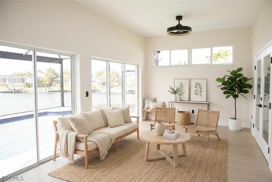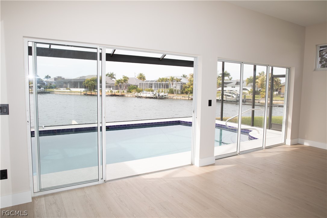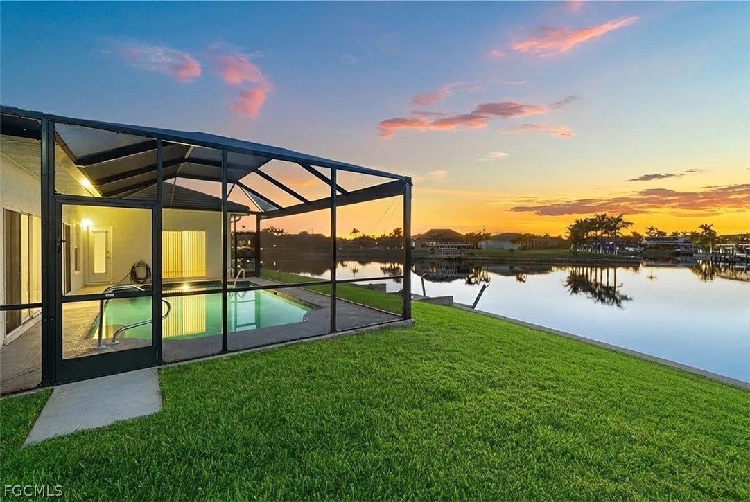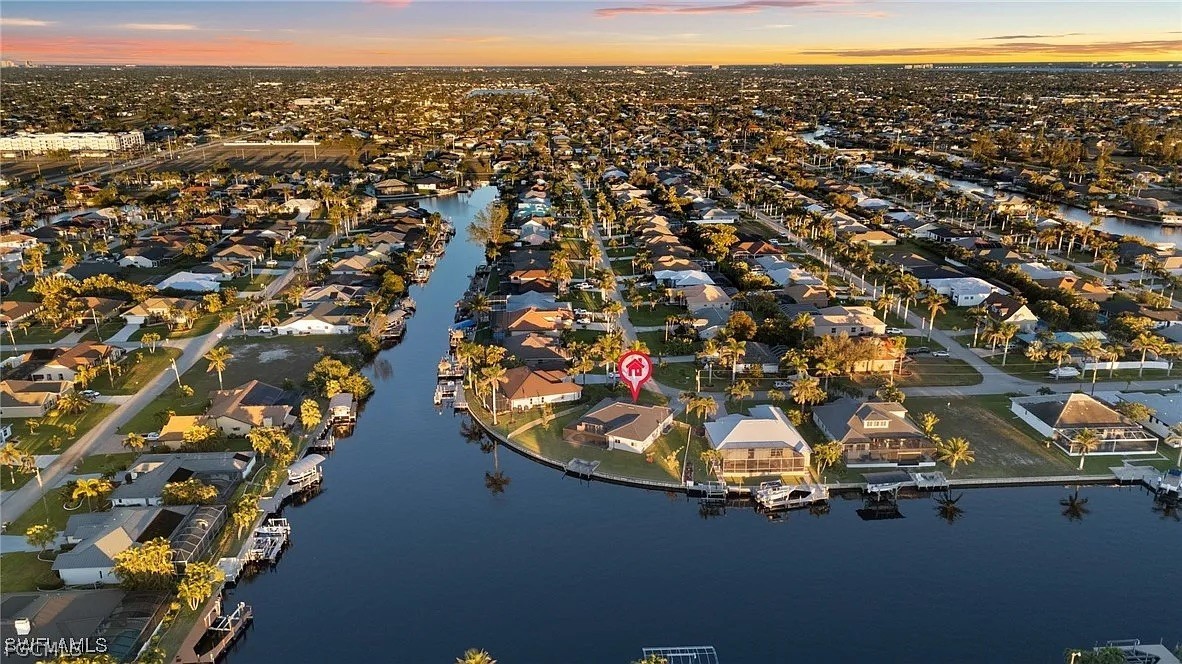 FULLY RENOVATED - Welcome to Waterview Haven, a truly exceptional waterfront residence ideally positioned at the intersection of three wide canals in the highly sought-after Southwest Cape Coral area. Set on a rare oversized, pie-shaped lot, this home offers breathtaking panoramic water views and front-row sunset scenery—paired with extensive recent upgrades that provide modern comfort and confidence. Extensive updates include: a new roof (2023), new pool cage and HVAC system (2024), new garage door, fencing, and water heater (2025), and a complete waterline repipe (2025). Extensively updated with luxury vinyl flooring, quartz bathroom countertops, new showers, upgraded faucets, modern ceiling lighting and fans, two new Smart TVs, fresh interior and exterior paint, new Plantation shutters, new garage door and numerous additional enhancements. From the moment you step through the double front doors, you are greeted by a bright, open floor plan with soaring ceilings and uninterrupted sightlines straight through the living area to the pool and expansive water beyond. The home features 3 bedrooms and 2 bathrooms across approximately 2,216 square feet of living space, thoughtfully designed with a split-bedroom layout for privacy and comfort. The spacious kitchen opens seamlessly to the family and dining areas, making it ideal for both everyday living and entertaining. With generous counter space, breakfast bar seating, and a welcoming dinette area, the kitchen invites you to enjoy morning coffee while watching boats pass and fish jump in the canal. One of the home’s standout features is the large, air-conditioned sunroom, offering incredible water views and spectacular sunsets year-round. This versatile space is perfect for relaxing or hosting guests and can easily be converted back to an open lanai if desired. Outside, the screened pool and panoramic pool cage create a serene waterfront retreat with unobstructed views in every direction. The fully fenced, oversized yard provides exceptional outdoor living potential—lush, private, and spacious enough for entertaining, play, pets, or future enhancements such as a fire pit or seating area. A concrete dock along the seawall offers a perfect spot for fishing, lounging, or enjoying life on the water, with Gulf access via intersecting canals. Located on a quiet, peaceful street surrounded by upscale waterfront homes, this property offers the perfect balance of privacy, community, and convenience. Whether you’re seeking a full-time residence, a seasonal retreat, or a waterfront lifestyle investment, Waterview Haven is a rare opportunity to own a truly special piece of Cape Coral waterfront living. Schedule your private showing today and experience the sunsets for yourself.