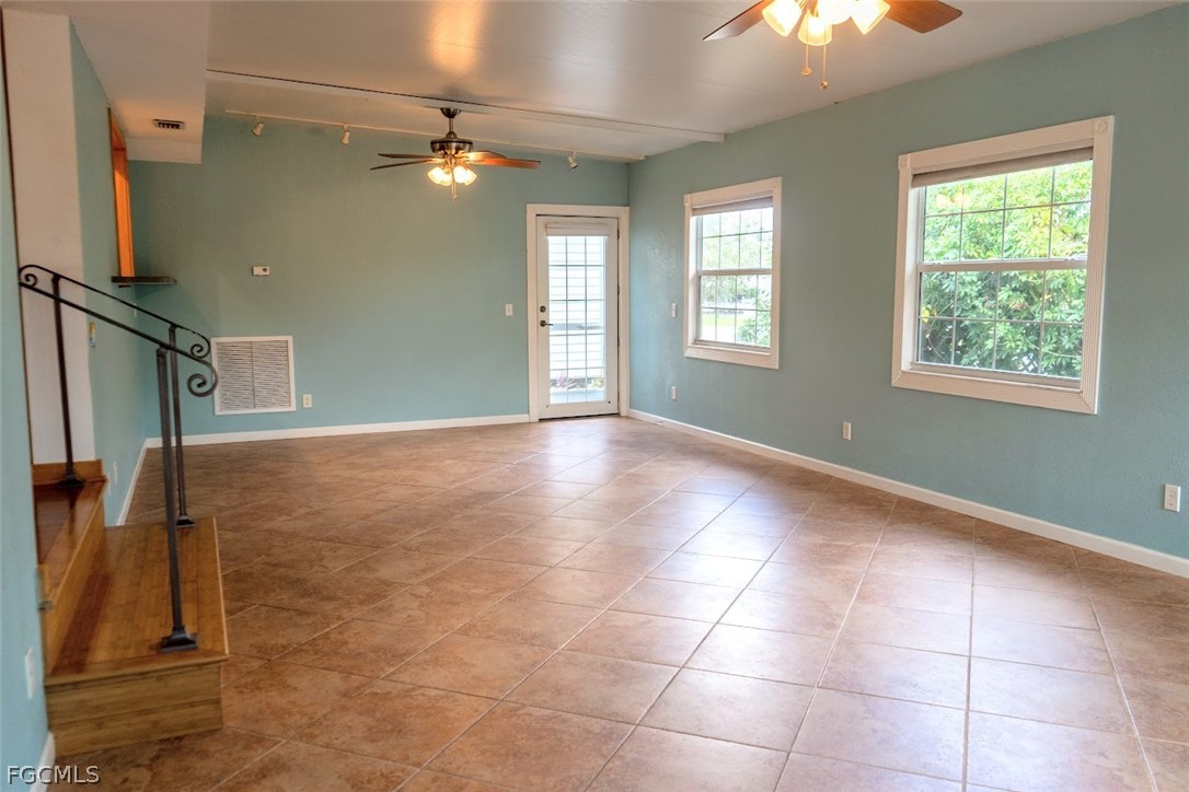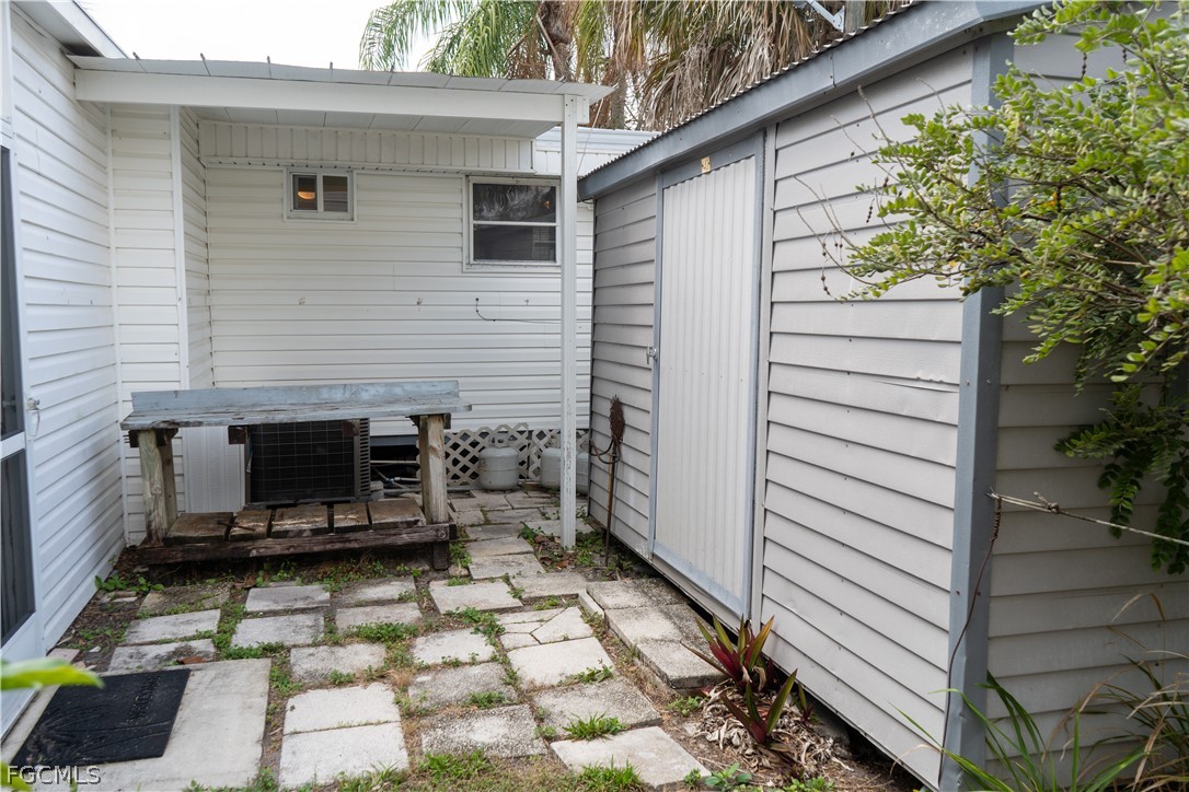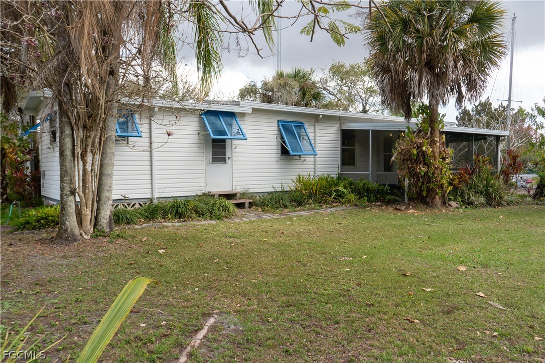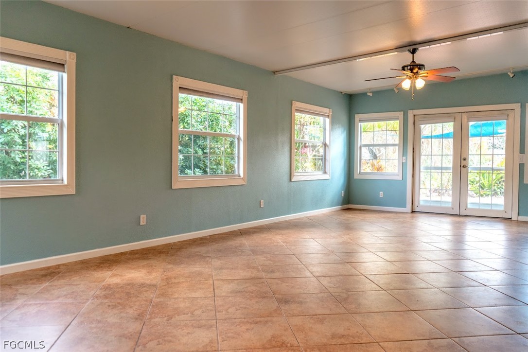 The Florida room includes two ceiling fans and French doors that open to a patio overlooking the canal and boat dock. The outdoor patio is enhanced with sun sails for shaded relaxation, creating an ideal setting to enjoy the waterfront lifestyle. A single exterior door provides convenient access to the laundry/workshop shed.