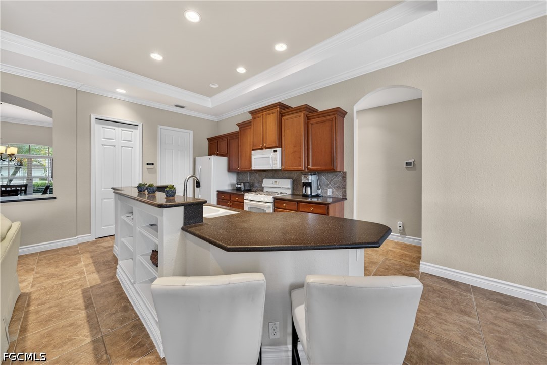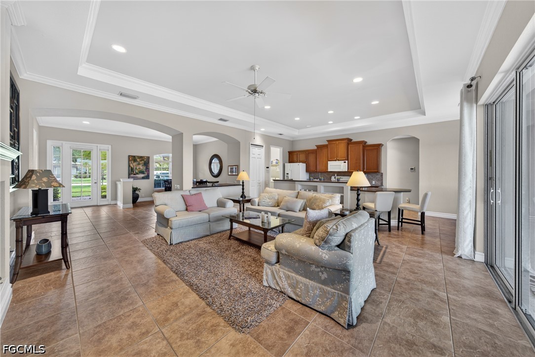 Offered beautifully furnished and turnkey, this 3-bedroom, 2-bath plus den home features an open-concept layout filled with natural light. The kitchen is well-appointed with natural gas appliances, solid-surface countertops, rich wood cabinetry, and a breakfast bar, ideal for both casual dining and entertaining. The pool and spa overlook the lake, creating a private backyard setting that defines the Southwest Florida lifestyle. Additional improvements include a epoxy garage floor.
