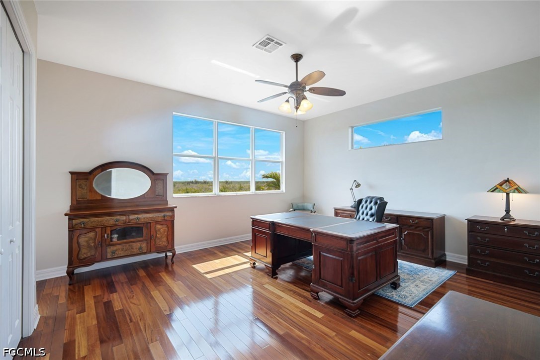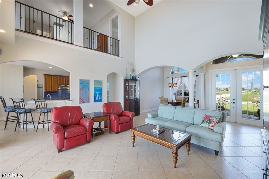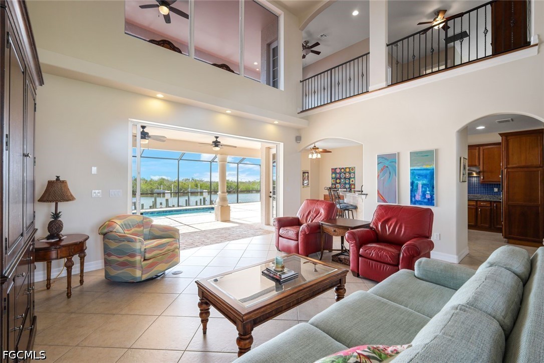 If you value privacy, deep wide water canal with no bridges to world class fishing and beaches, beautiful sunsets in a custom-built one-of-a-kind home this can be yours. Located on the spreader "rim" canal across from a state preserve, no structures will ever be built to obstruct your view or privacy. The home has an east-west exposure to enjoy world class sunsets and experience the Florida lifestyle. Enjoy a short 20-minute boat ride to Matlacha and open water with no bridges. This one owner home is built with quality throughout, the home is thoughtfully designed and features a grand great room with soaring 20-foot ceilings and views straight out to the water. The main bedroom is located on the first floor for easy living. The kitchen features wood cabinets, pull outs with dovetail drawers and & "blue eye" exotic granite counter tops. Upstairs there is another living area and a large, screened balcony to overlook the water and watch the eagle soar. Outdoors there is a large pool area with brick paver decking, great for watching dolphin and manatee swim. Cruise to the gulf - no bridges from the dock with a 10,000-pound lift. The home features a tile roof that was replaced in 2022 as well as a three-car garage. The home has always been high and dry. There are impact windows upstairs and shutters which provide you with peace of mind for the future. If you are tired of the modern white boxes and looking for a charming home with some individuality, come see this home. This currently the lowest priced home on the spreader canal! Don't miss the opportunity to come and live your dream.